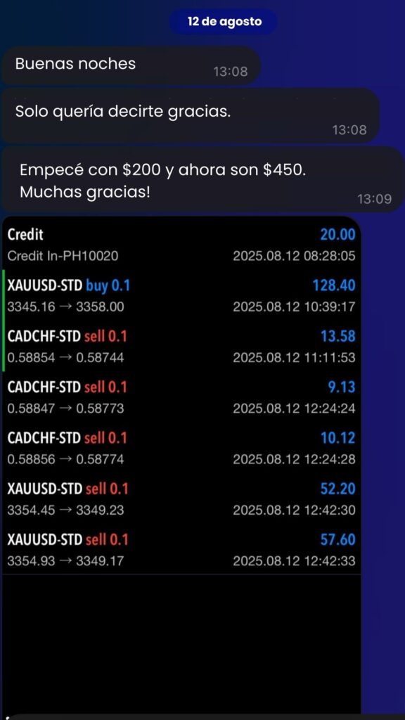 ¡Simple! Desde que comencé en 2015 recibí muchas preguntas sobre mis métodos y estrategias. Por eso creamos un grupo en Telegram para llegar a más traders. Gracias a nuestra alianza con un broker, recibimos una compensación para compartir estas operaciones con la comunidad.